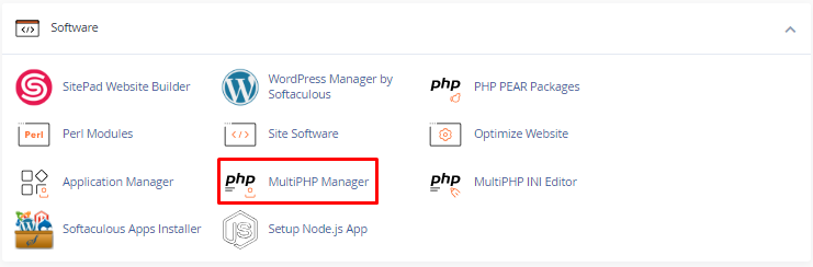 2. Navigate to the Software section and click on Select MultiPHP Manager.